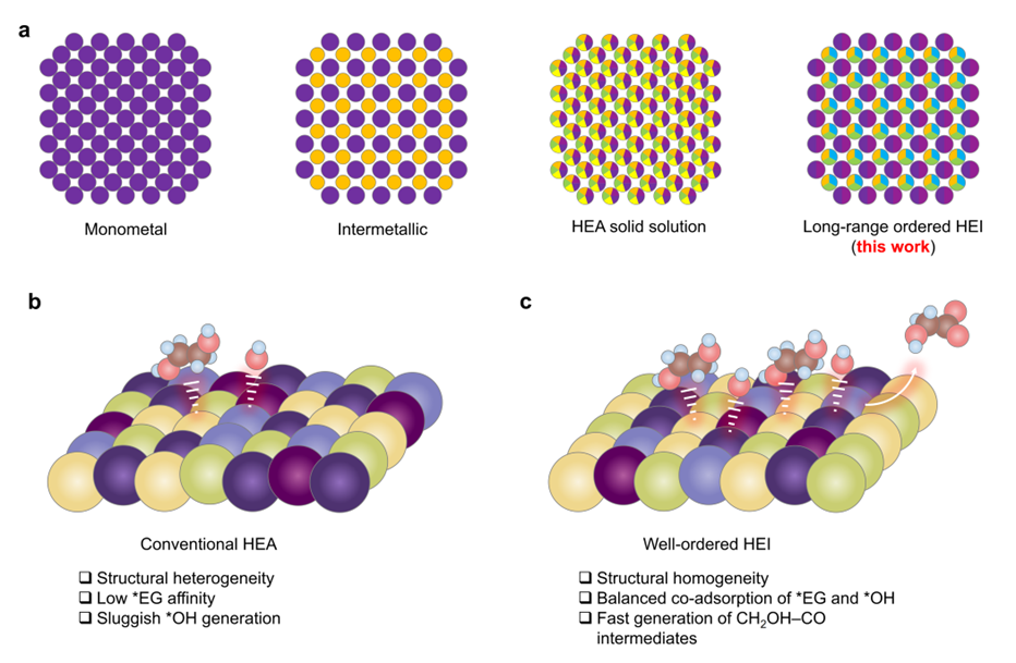近日,太阳城集团官方网站高国华副教授、江南大学朱罕研究员、清华大学庄泽超博士团队合作在《德国应用化学》(Angewandte Chemie)期刊发表题为“Suppression of Structural Heterogeneity in High-Entropy Intermetallics for Electrocatalytic Upgrading of Waste Plastics”的研究论文。该研究成功合成了长程有序的(PtIr)(FeMoBi)HEI催化剂,有效抑制了结构异质性,从而提高了催化效率和选择性。(PtIr)(FeMoBi)HEI催化剂在电催化氧化...