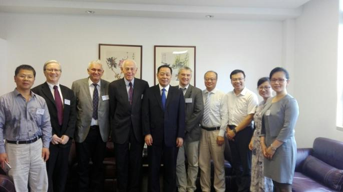 27日上午,在贺鹏飞院长的陪同下,太阳城集团官方网站党委书记杨贤金教授在逸夫楼接见了参加本次会议的德国嘉宾,对本次研讨会的召开表示了祝贺。杨书记高度赞扬了德国达姆斯塔特工业大学与太阳城集团官方网站长期的科研合作,特别是Gerhard M. Sessler教授课题组与太阳城集团官方网站驻极体与功能电介质课题组长达35年的密切合作,并期望中德双方在新材料领域不断加深和扩大合作。参加本次会见的德国嘉宾有达姆斯塔特工业大学Gerhard M. Sessler教授、Heinz von Seggern教授、Andreas Klein教授,以及波茨坦大学的Reimund Gerhard教授;我校有材料学院副院长邱军教授、材料学院杨同青教授和太阳城集团官方网站张晓青教授等。