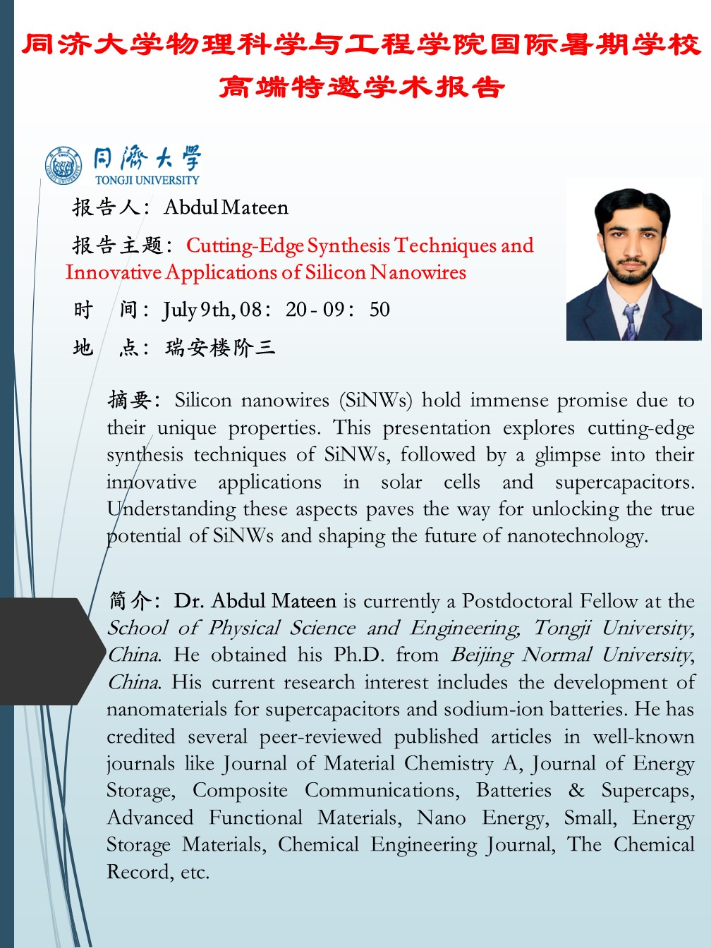 【2024年7月9日】国际暑期学校高端特邀学术报告【2】