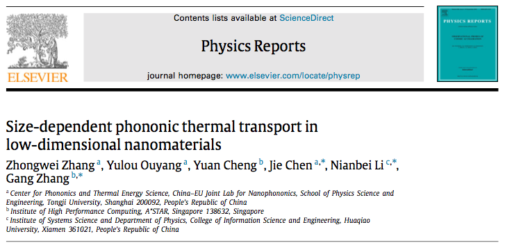 近日,太阳城集团官方网站博士生张忠卫(第一作者)、陈杰教授(共同通讯作者)与华侨大学李念北教授(共同通讯作者)以及新加坡高性能计算研究所张刚教授(共同通讯作者)合作在物理类顶级期刊《Physics Reports》发表了题为“Size-dependent phononic thermal transport in low-dimensional nanomaterials”的综述论文,系统地总结了低维纳米材料热传导领域的最新研究进展,集中介绍了其独特的尺寸效应。论文从一维纳米材料出发,从理论模型、计算模拟以及实验测量等多个方面详细介绍了尺寸依赖热传导的独特现象及其物理根源,并介绍了相应的严格理论证明。此外,论文还全面归纳了二维材料中的尺寸依赖热输运特性,以及在界面热传导和热整流方面的效应。最后,论文指出了低维纳米材料热输运研究领域的主要挑战,并提供了一些解决当前问题的可行方案,为未来该领域的研究指明了方向。