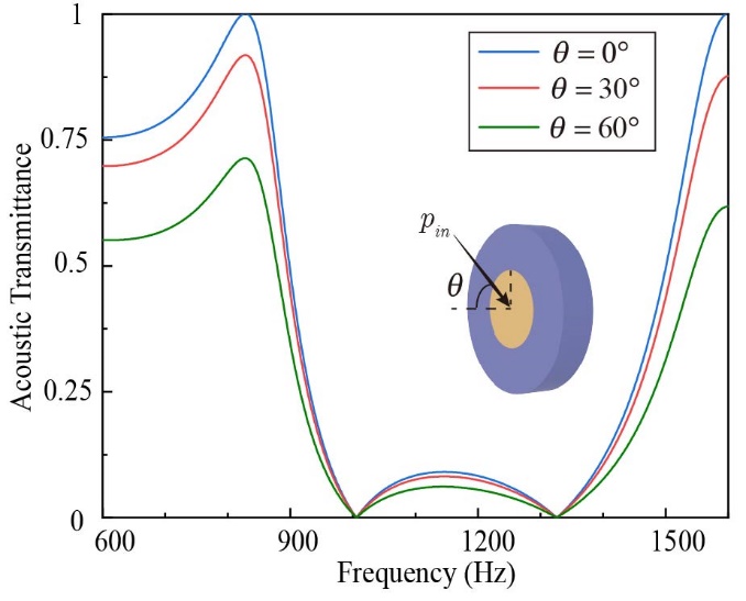 4.不同角度声入射条件下的隔声单元的声压透射曲线。
