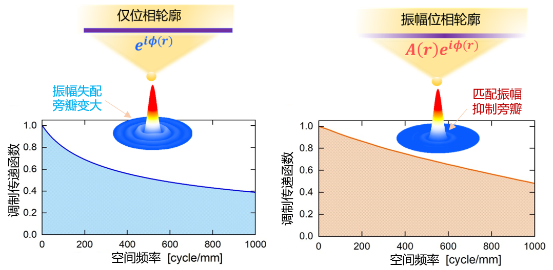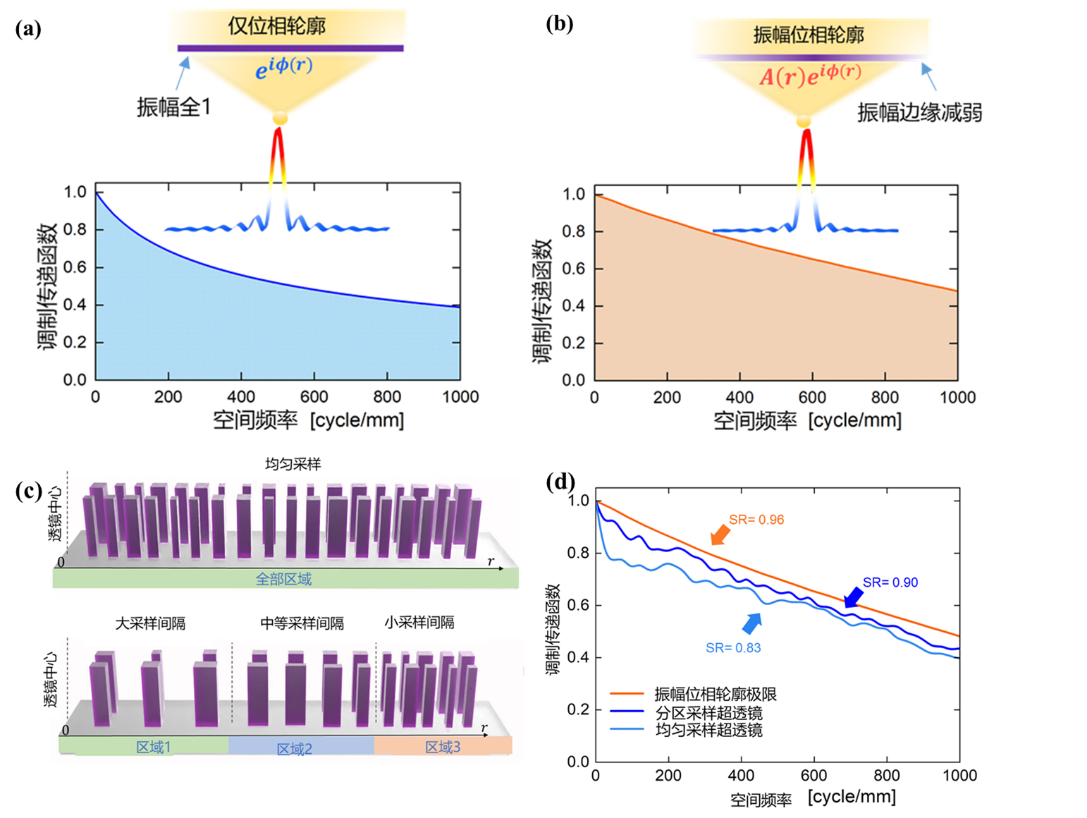 高分辨率的光学透镜/光学系统对先进光学成像十分重要。依据光学成像理论,为了实现高分辨率,需要光学透镜/光学系统同时具备大数值孔径和高调制传递函数。因为数值孔径决定了分辨率的上限,调制传递函数决定了其实际分辨率与上限分辨率的接近程度。目前,传统折射型的大数值孔径透镜实现高调制传递函数是很有挑战性的,主要受振幅不匹配的限制。