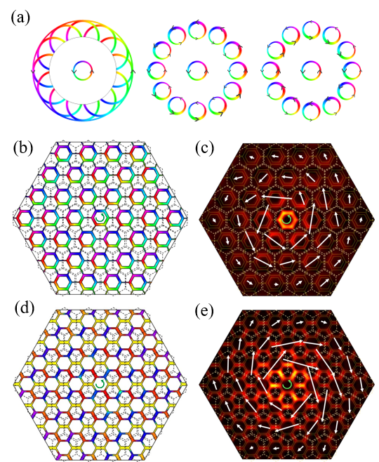 对称性是物理学中最基本的概念之一,通常光涡旋与时间反演对称和镜像对称的破缺有关。本项研究工作在保持这两种基本对称性的蜂窝光子晶体结构中,研究了由手性光源诱导的涡旋光干涉现象。论文从理论和实验上对比研究了具有不同拓扑特性的光子晶体结构中体态的传输特性:对于有效质量为正(负)的拓扑平庸(非平庸)结构而言,全局诱导的能流涡旋与结构局部能流涡旋相同(相反),这一研究结果打破了过去人们依靠“体—边”对应关系来间接确定结构拓扑性的常规思维,也为将来集成光学与拓扑光子学器件的研制提供了新机理。