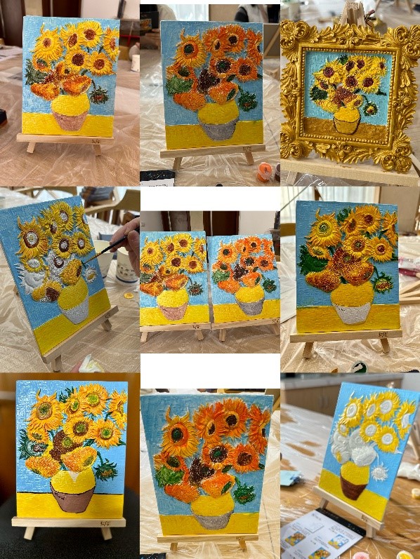 2023年3月7日,为庆祝“三八”国际妇女节113周年,表达对女教职工的关爱和重视,在太阳城集团官方网站工会和太阳城集团官方网站妇委的支持下,太阳城集团官方网站组织全院女教职工开展立体浮雕手绘油画活动。活动以手绘油画的形式,涂鸦梵高的向日葵、星空,莫奈的日出、丰收等经典名画。本次活动让女老师们在工作之余愉悦精神、放松心情,增强了学院女教职工们的交流和凝聚力,丰富了女教职工们的工作和文化生活。