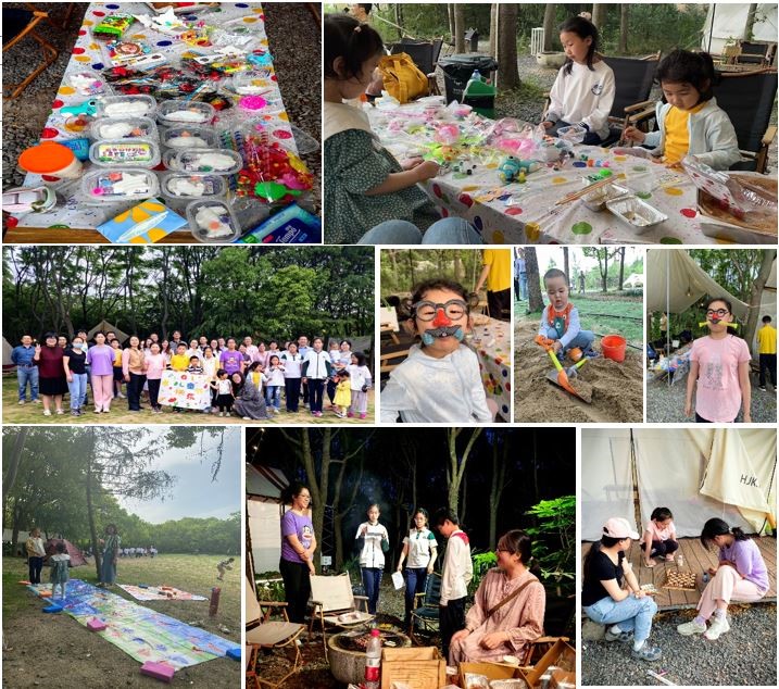 活动举办地在宝山区的一处露营公园,大大小小的帐篷散落在树林里,学院一行50余人参加了本次活动,到场23名孩子的年龄从2-14岁不等。
