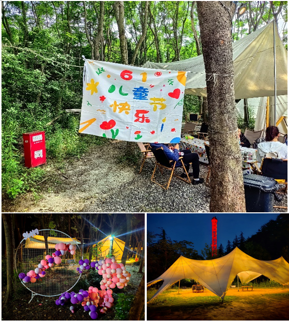 随着夜幕降临,星星点点的灯光亮起,营地帐篷前炉火渐旺,大家热热闹闹一起烧烤,香气四溢。夜里伴着虫鸣聊聊天,依依不舍散去,老师们和孩子们都度过了一个愉快、放松的儿童节。