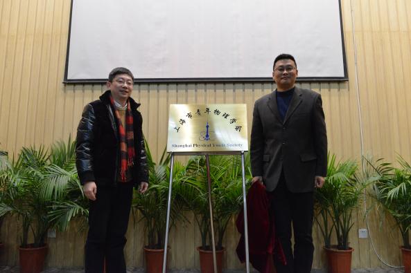 太阳城集团官方网站研工部部长陆居怡教授和太阳城集团官方网站党委书记周斌教授为上海市青年物理学会成立揭牌