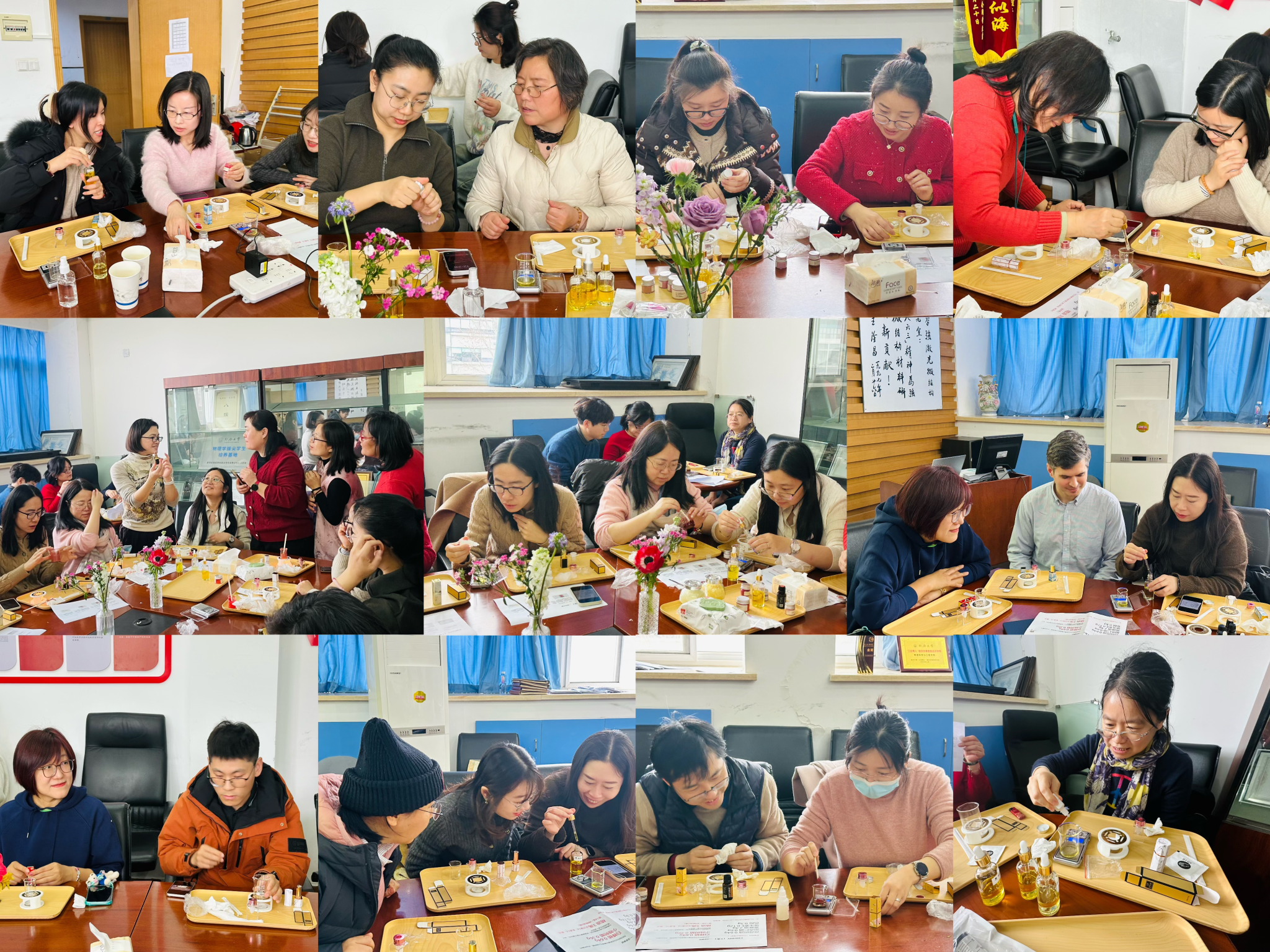 在“三八”妇女节来临之际,在学校妇委和工会的支持下,学院于3月4日举办了一场"芬芳三八节·唇享好时光"主题活动,通过创意手作与榜样宣讲传递女性理想。活动特别设置“致敬她力量”环节,学院妇女工作分管领导谢双媛教授向教师们介绍了历年获得太阳城集团官方网站卓越女性荣誉奖、太阳城集团官方网站“三八”红旗手和集体、阖家齐飞家庭、青年女教师成才资助等相关奖项的老师先进事迹。