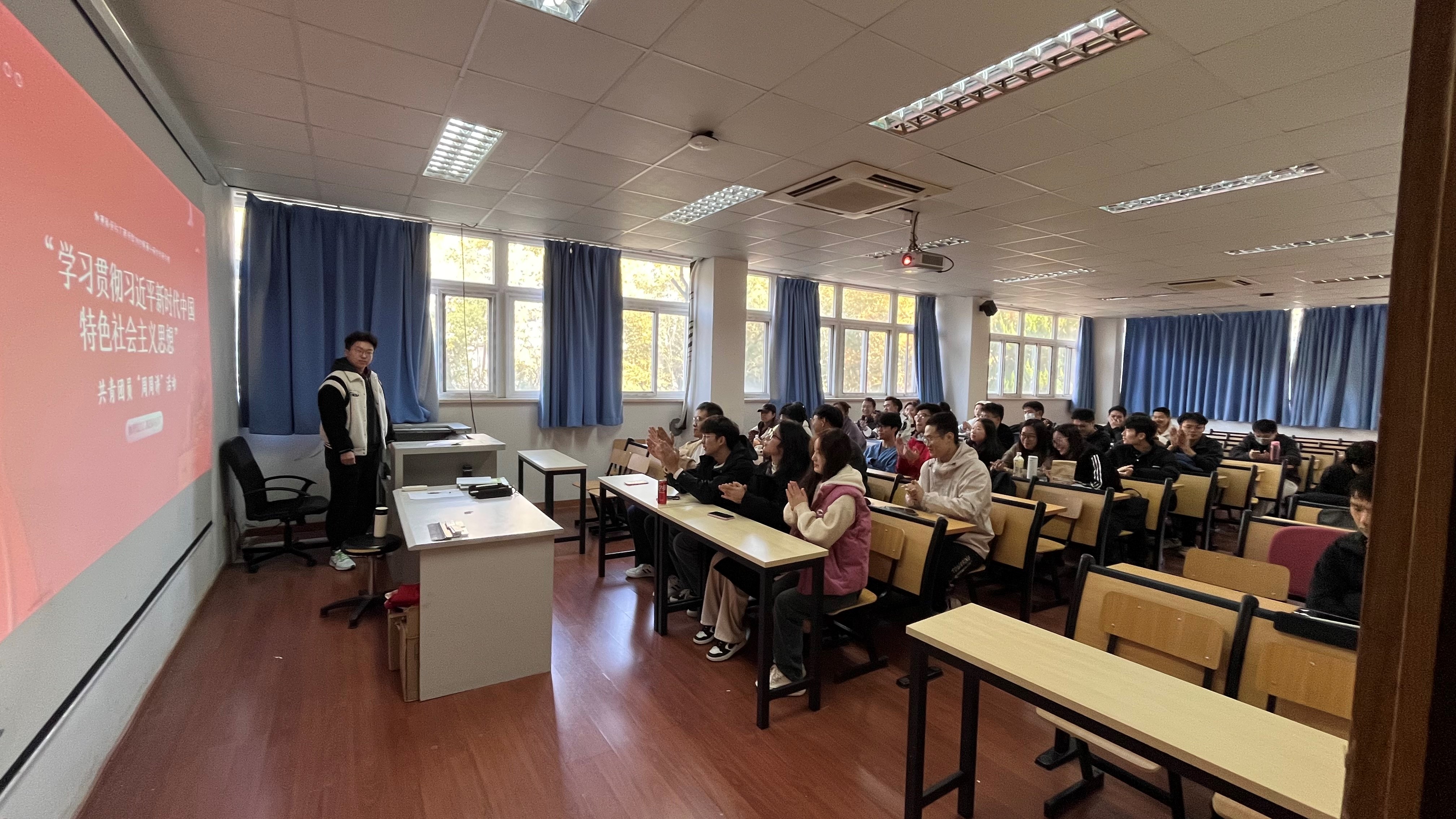 太阳城集团官方网站2023级硕士研究生团支部成立于2023年9月3日,现共有团员53人,其中党员(含预备党员)11人。在学院团委的指导下,团支部于2023年11月17日下午在物理馆212教室开展“周周讲”活动,本次团日活动主题为“学习贯彻习近平新时代中国特色社会主义思想”。