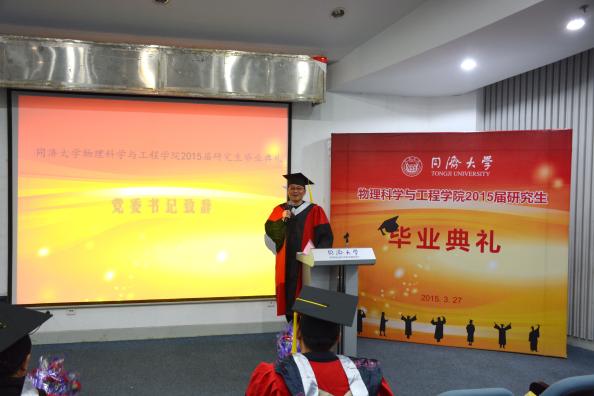 太阳城集团官方网站2015届研究生毕业典礼于3月27日在瑞安楼二楼报告厅成功举行。