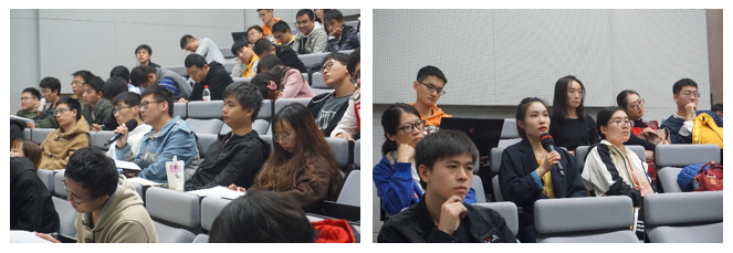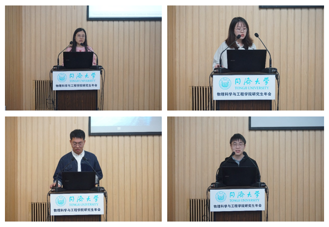 本次研究生年会,邀请十位物理学院优秀研究生代表做会议报告,报告内容涵盖薄膜材料、纳米材料、光子晶体、声学、光学、机械学习、磁学等诸多专业方向,报告人来自硕博各年级、各专业,针对学术成果进行讲解。每每完成讲解,都有多位与会师生提问讨论,学术互动如火如荼。
