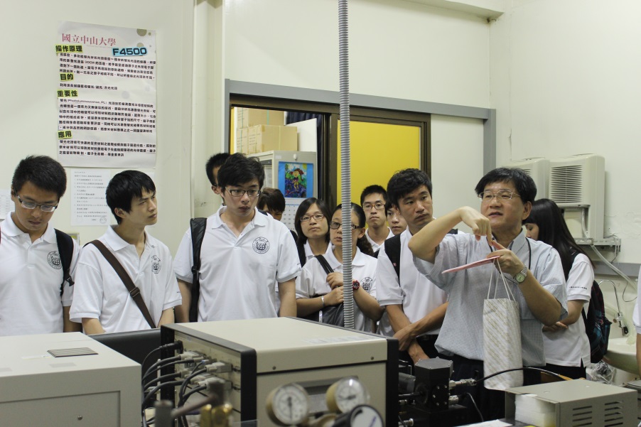 随后,罗奕凯教授介绍了高屏地区纳米科技中心设施共同实验室。实验室依据半导体行业标准建立的质量管理体系、安全防护规范、实验仪器配置和一体化研发平台给我们留下了深刻印象。在参观过程中,大家近距离接触到了双束型聚焦离子束显微镜、高密度等离子体化学气相沉积系统、感应耦合式等离子体刻蚀系统和激光溅射镀膜系统等高精密仪器设备;由科研成果展板中的微观阵列图像,直观感受到了纳米世界的物理之美。此外,罗奕凯教授还向我们介绍了关于高效能、高亮度氮化镓纳米电子与光电元件的最新研究成果,已制成的不含荧光剂的二元白光LED,能够减少荧光剂而造成的能量转换损失。