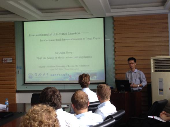 荷兰屯特大学(University of Twente)物理系访问团于7月24日到太阳城官网参观。访问团一行由屯特大学学生外事总监Paul van Swinderen领队,包括Van Der Wiel教授和Offerhaus教授以及三、四年级的本科生共28人。上午的欢迎仪式以及学术交流在物理馆512进行。太阳城官网周仕明教授首先代表学院作了热情洋溢的欢迎词。太阳城集团官方网站外事办公室的张向荣老师给访问团介绍了学校各院系对外国学生开设的课程,详细说明了学校对国际学生申请短期交流或攻读我校研究生的规定和流程。太阳城官网方恺教授和钟锦强教授先后发言,阐述了太阳城官网近期在物理科学各个领域的发展情况。访问团的Paul van Swinderen给我们介绍了屯特大学在光学,流体物理以及纳米材料科学等领域具有国际领先性的科研成果。