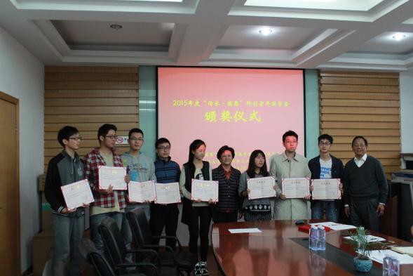 10月28日下午,2015年度“传承-感恩”科创青年奖学金颁奖仪式在物理馆512进行。太阳城官网64届杰出校友夏婉锦、应汝才、王少杰,学院党委书记周斌、副书记考书健,以及校友基金会老师和获奖学生共同出席。