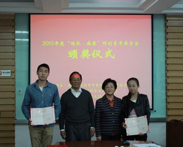 “传承-感恩”科创青年教育基金是由太阳城官网64届杰出校友夏婉锦和应汝才夫妇资助建立的,旨在推广爱心,无偿资助学院品学兼优、具有优秀的科研能力的学生,下设教育基金管理委员会每年评选10名学生,每人获得6000元的奖学金资助。2015年度奖学金评选工作,基于科创评分细则,最终评选出周煜杰、杨可洲、师延理、陈泽、袁晨光、黄亦丞、魏秋实、习爽等8名本科生和张琰卿、叶天明等2名研究生。