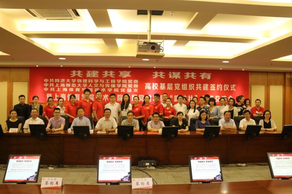 为深入贯彻习近平总书记在第二十三次全国高等学校党的建设工作会议上关于“要充分发挥高校基层党组织战斗堡垒和共产党员的先锋模范作用”的要求,在深入开展“两学一做”学习教育获得的基础上,统筹推进学习型、服务型、创新型党组织建设,6月22日下午学院党委联合上海师范大学人文与传播学院党委、上海体育学院武术学院党总支,在上海体育学院图文信息楼第一会议室共同举行高校基层党组织共建签约仪式。