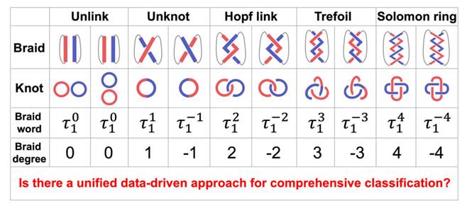 太阳城集团官方网站王策/任捷教授AI for Science团队在机器学习分类非厄米系统物态编织和纽结拓扑方向取得重要进展。在不需要任何先验的数学物理知识的情况下,该团队利用人工智能解决了非厄米物理和拓扑数学交叉领域的一个重要问题,利用n倍扩展倒易空间里基于su(n)李代数表示的无监督流形学习,识别和分类了宇称-时间对称或对称破缺下的非厄米物态编织和纽结拓扑,展示了其在非厄米拓扑物理,纽结、编织群方面的巨大潜力。研究成果以“Machine learning of knot topology in non-Hermitian band braid”为题,发表在国际知名期刊Nature旗下《通讯-物理》(Communications Physics)。
